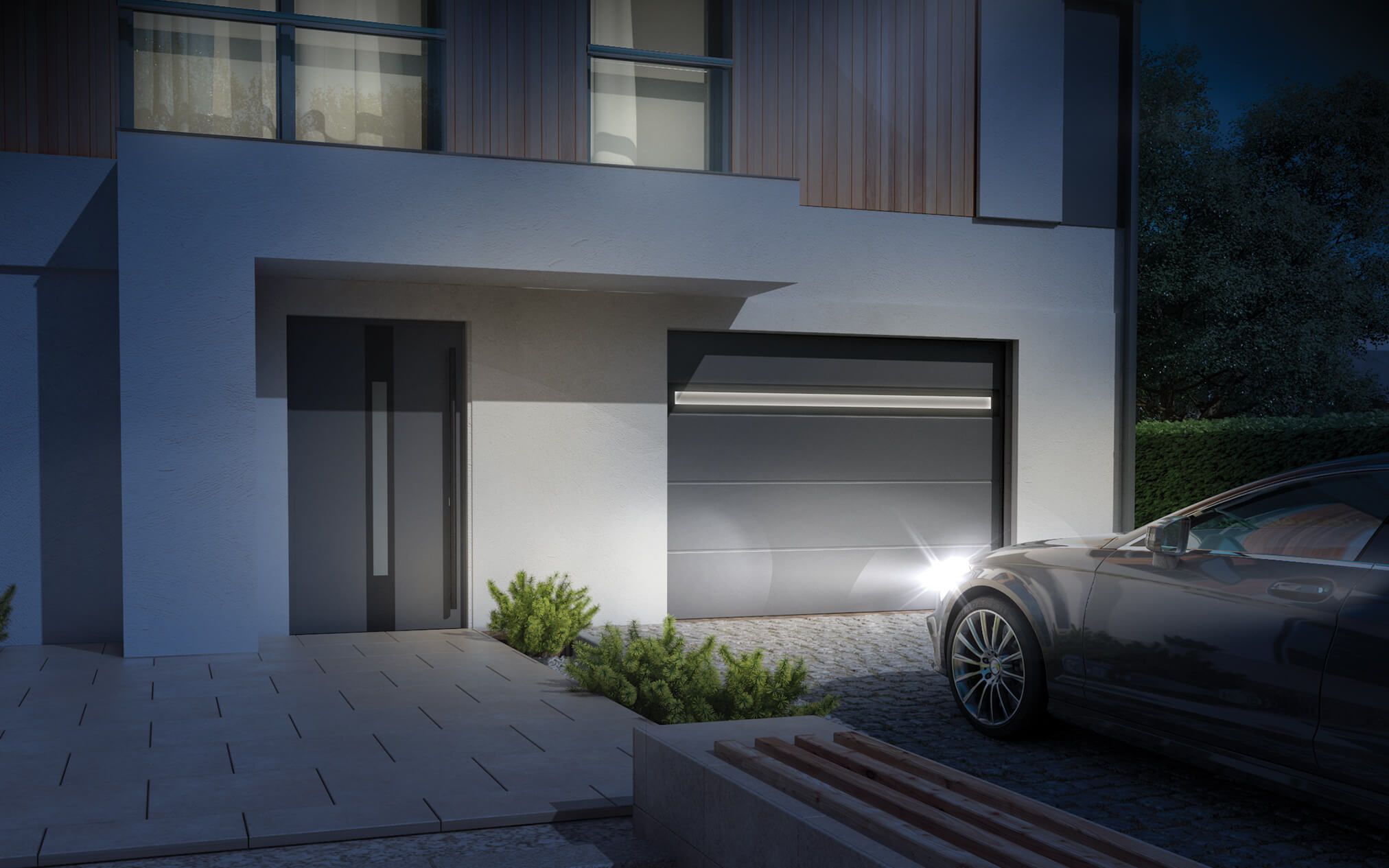Another manner of giving the garage door individual character is the addition of LED lighting to the HORIZON panel.