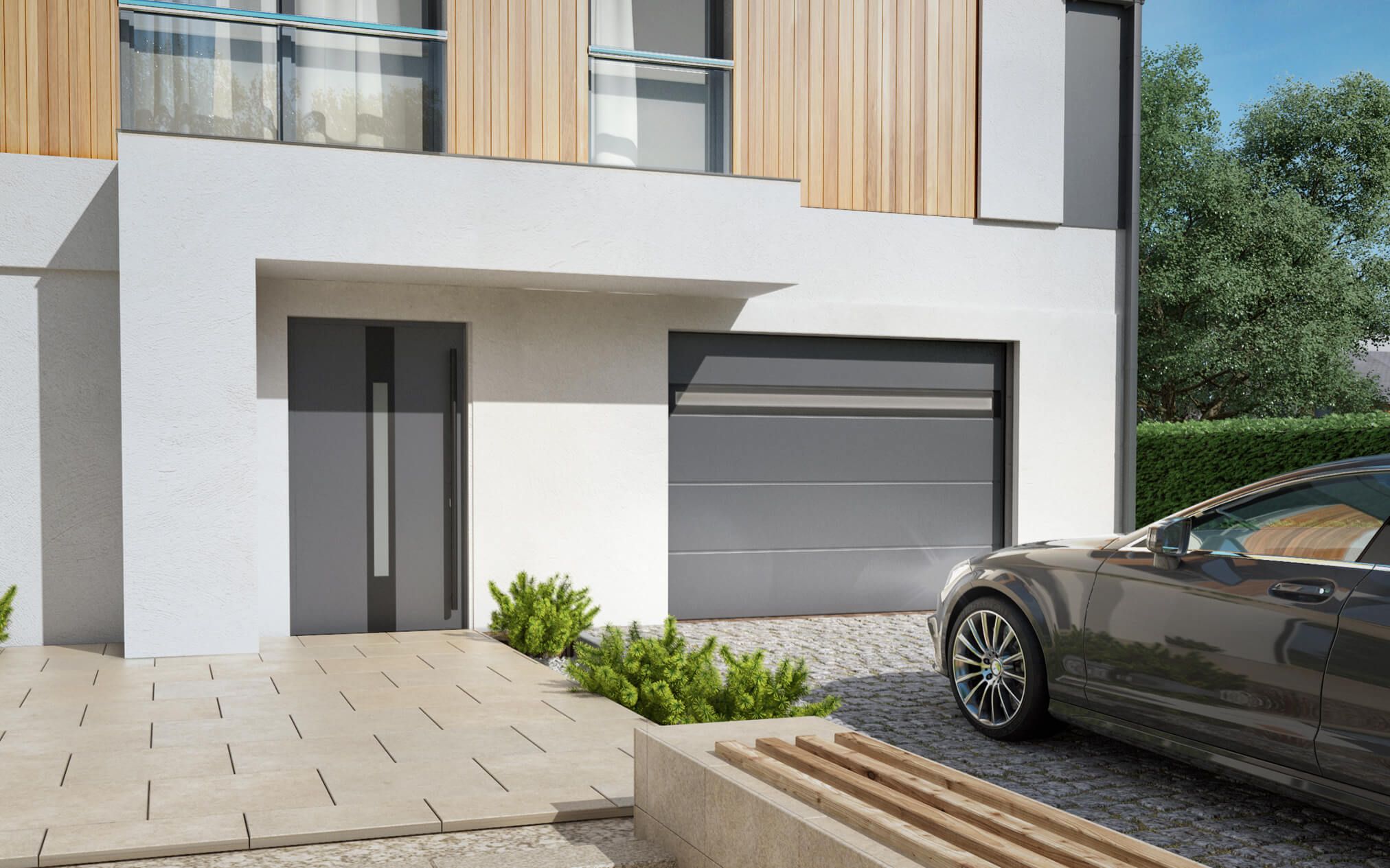 It highlights the style of the garage door in a subtle way, making it unique. Together, they form a coherent whole, not only colour-wise.