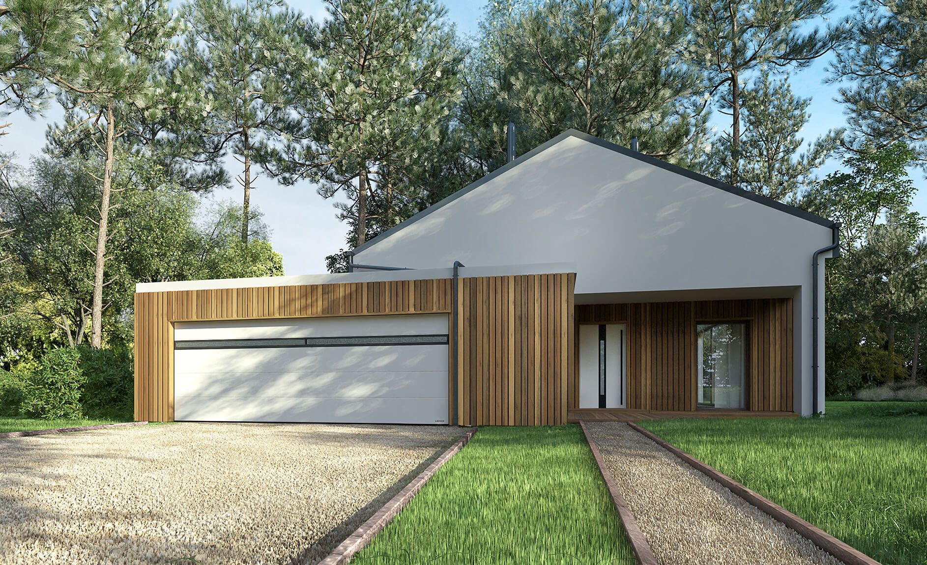 The door is available with a single HORIZON panel glazing. It is mounted between the last and last but one panel from the bottom. This way, the light gets diffused within the interior at the eye level of an average adult person. It also makes it possible to maintain the right proportions on the outside.
