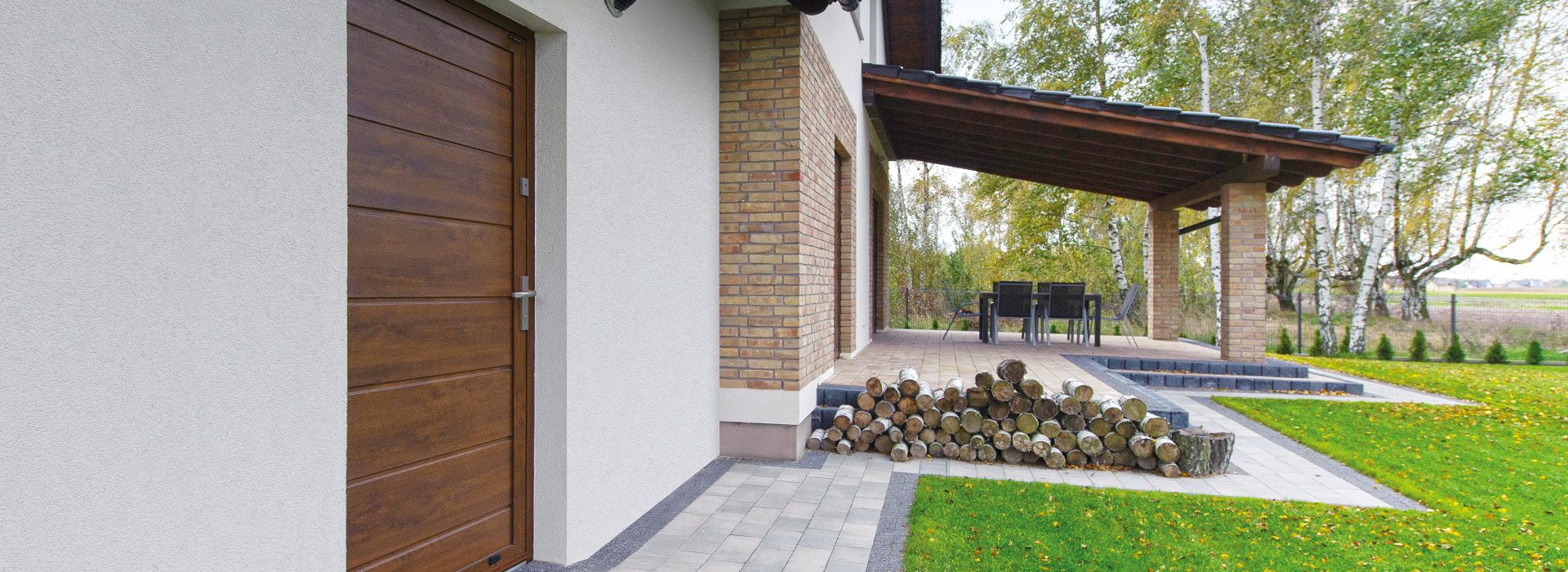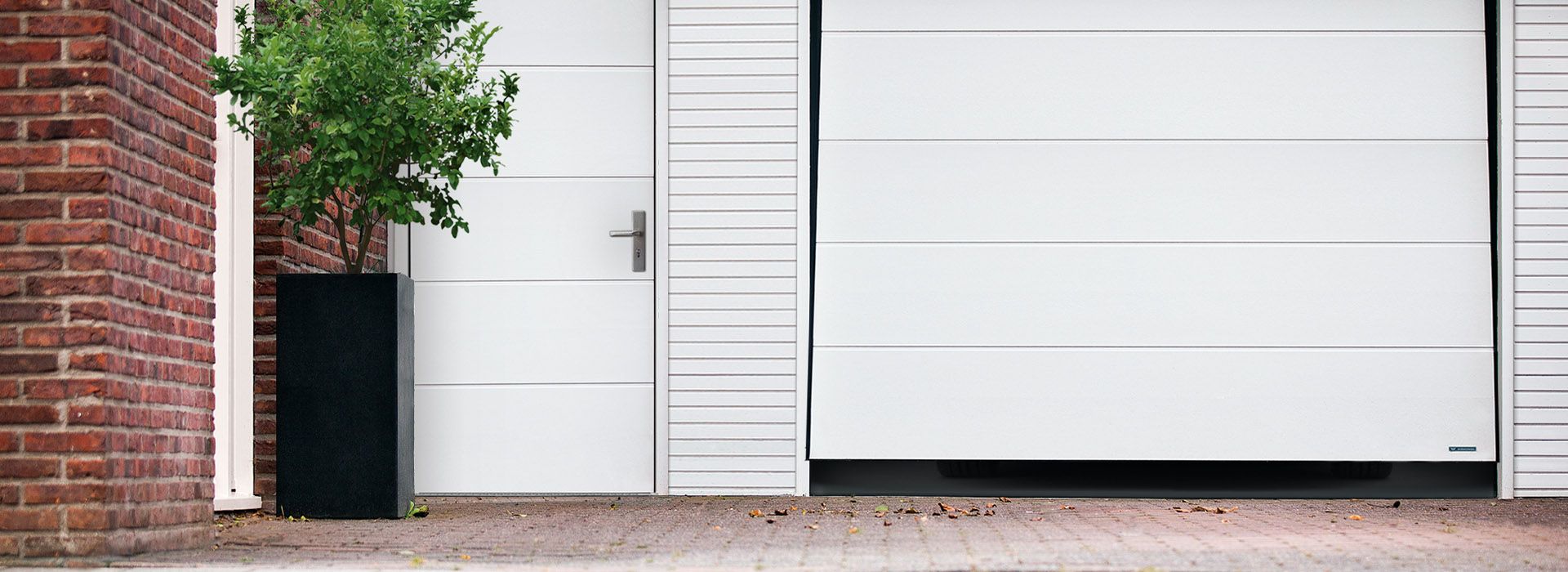 Aluminium panel doors are a great solution as a second entrance to a garage with a sectional or roller door. Thanks to consistent model and structure design that features the same material (aluminium), they form an aesthetic and functional element of the building. In a double-leaf version, they can also serve as a garage door.