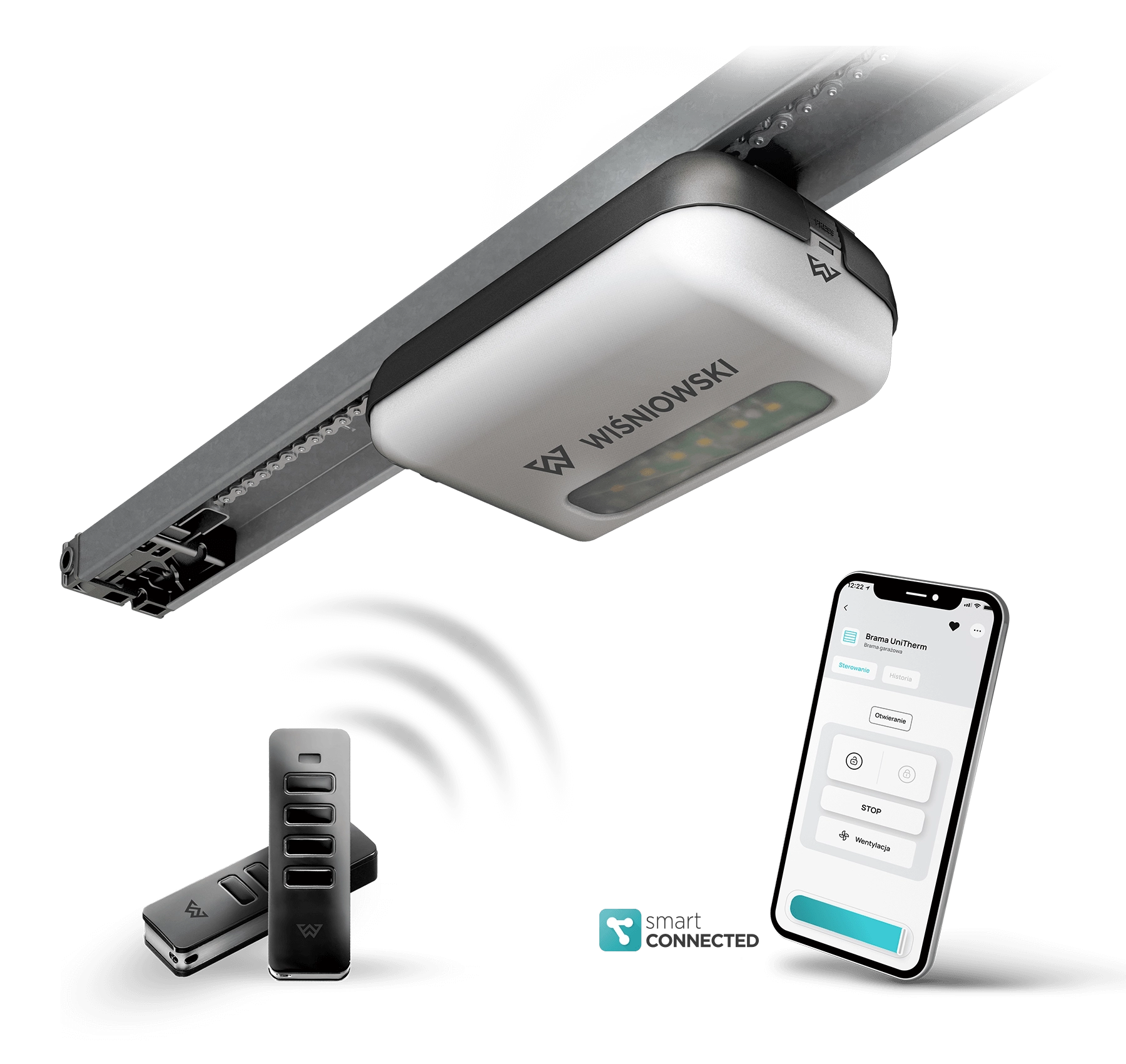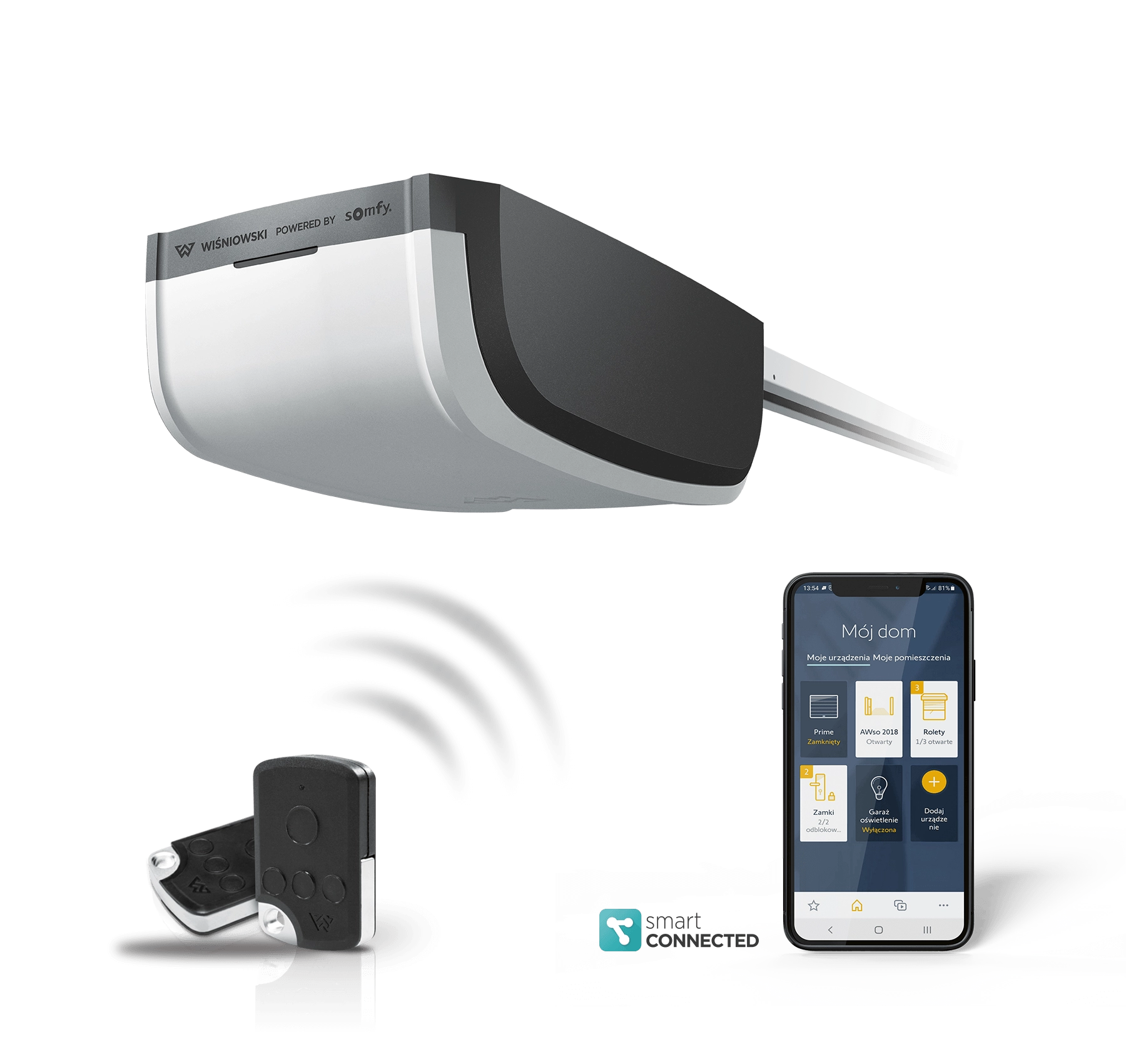 An automatic operating unit that has everything you need in it. The product, created in cooperation between WIŚNIOWSKI and Somfy, gives you high quality, reliability, and practical functionalities as standard. It enables control via transmitters, the connection of photocells, and quick setup.