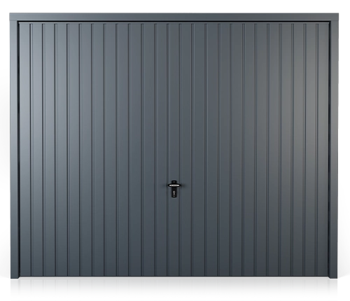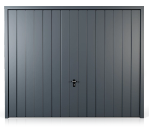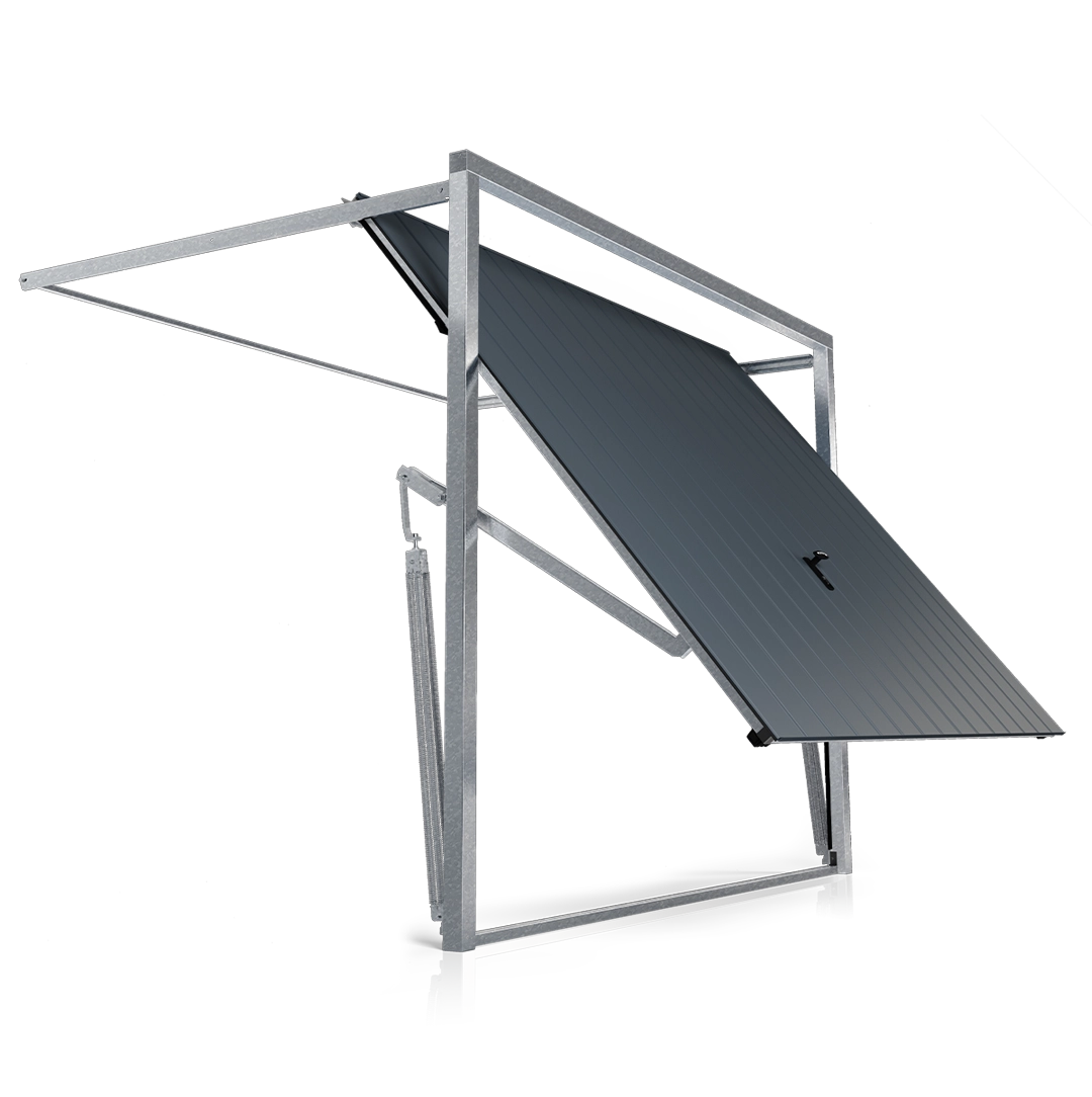 It is a version of the up and over garage door that you can easily insulate with a layer of polystyrene and finish a PVC panel inside. You can also add a convenient wicket door. Garage safety is ensured by secure locking and the structure is reinforced by a practical crosspiece connecting the horizontal tracks.