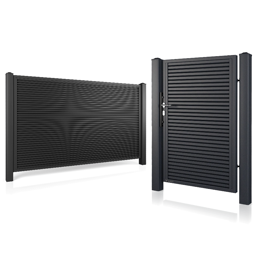 With the louvre customization option in models AW.10.228, AW.10.229, and AW.10.230 (in the gate, wicket or segment), you can add a unique character to your fence.
