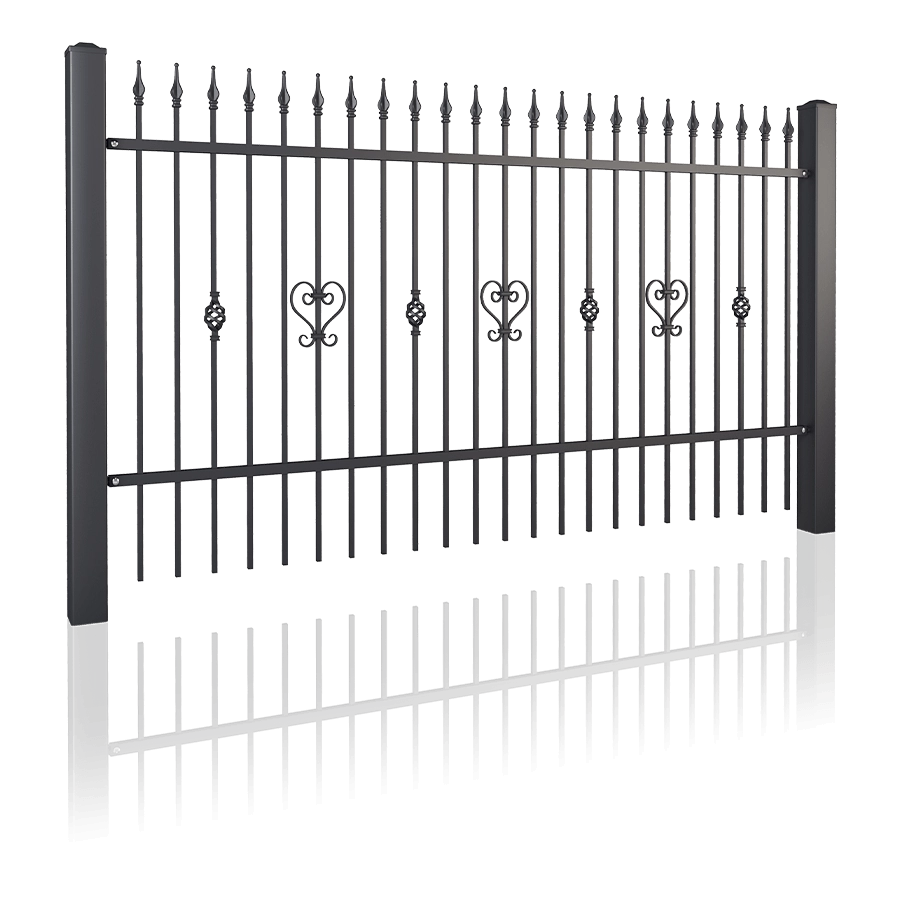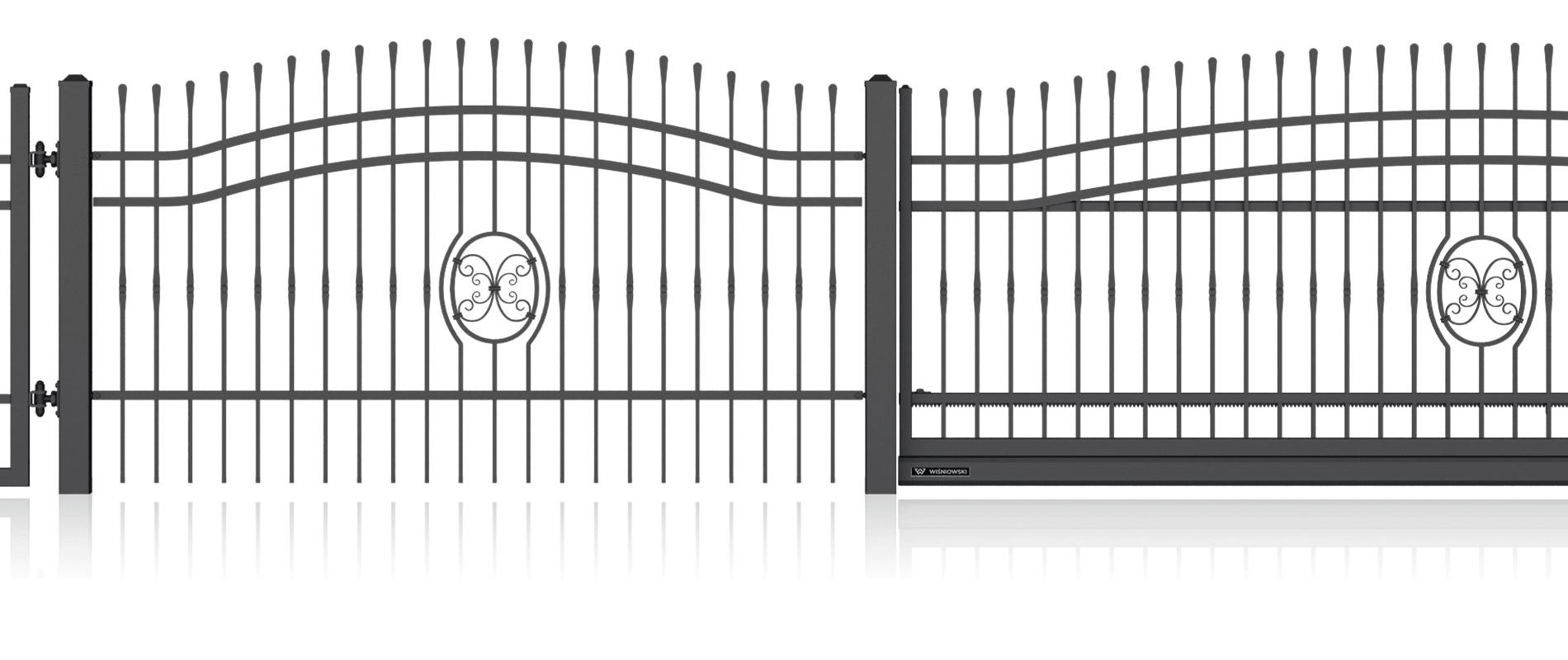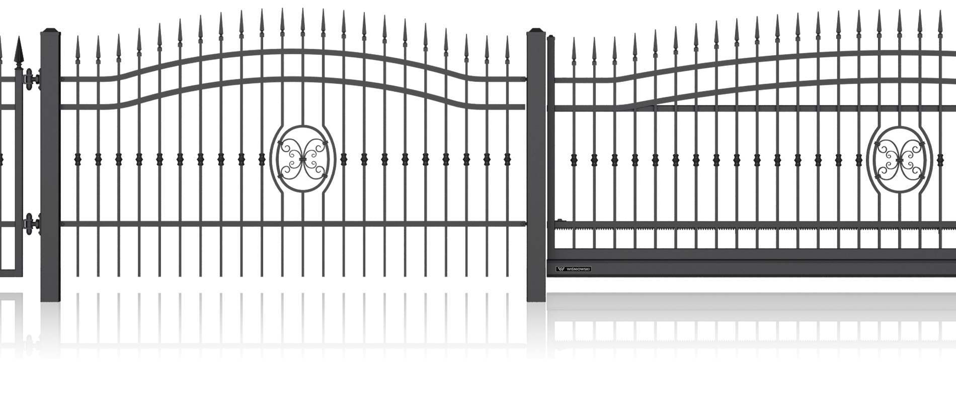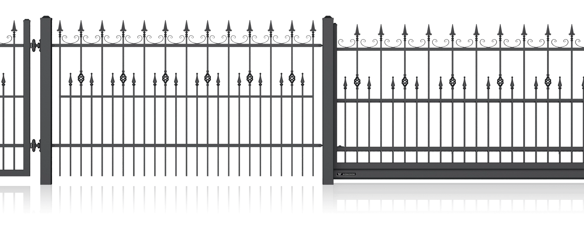 Steel rods with a cross section of 14x14 [mm] making up the infill of the elements from this collection give the structure exceptional lightness. Depending on the model, the top edge of the fence can be convex, concave or straight. If your property is located on a plot of land with considerable differences in elevation, consider the skewed version.