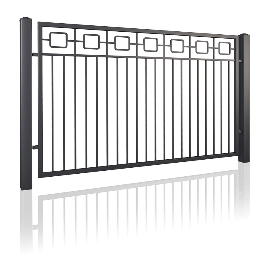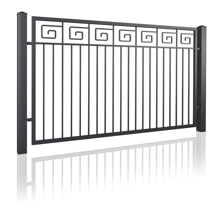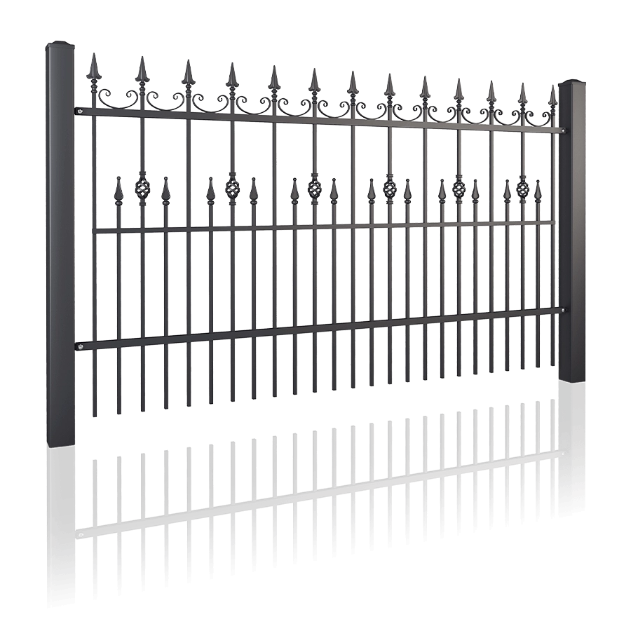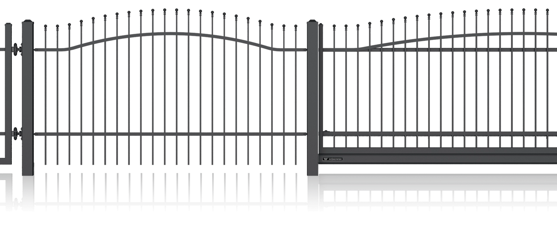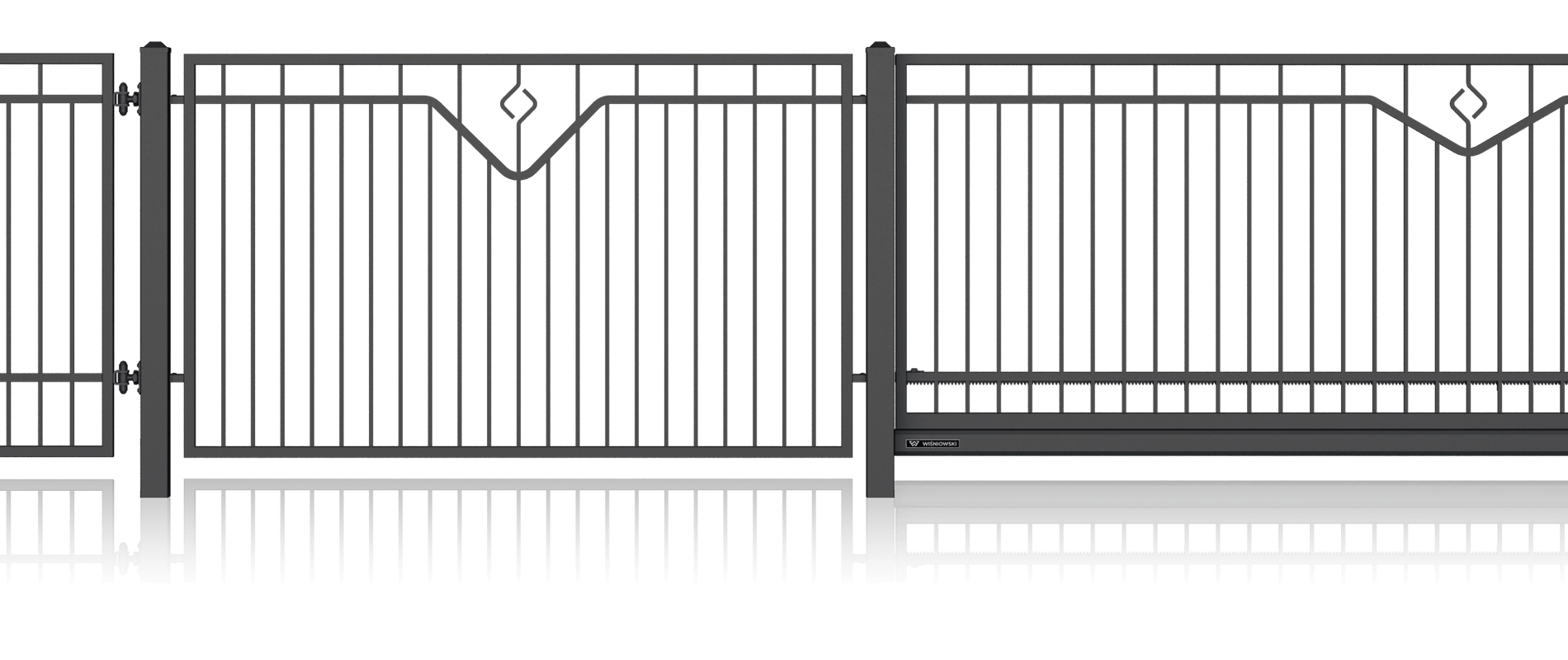 Steel rods with a cross section of 14x14 [mm] making up the infill of the elements from this collection give the structure exceptional lightness. Depending on the model, the top edge of the fence can be convex, concave or straight. If your property is located on a plot of land with considerable differences in elevation, consider the skewed version.