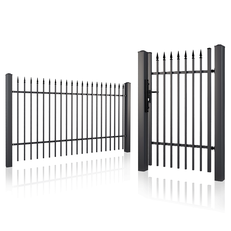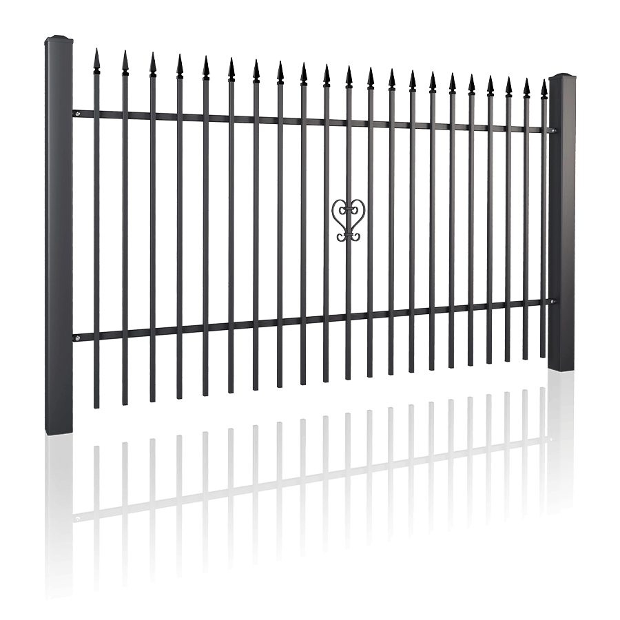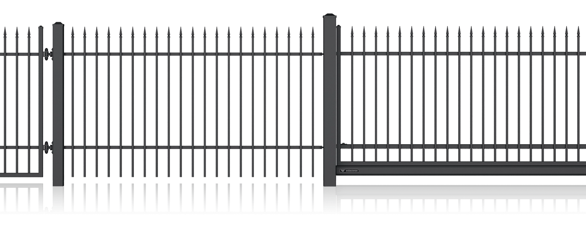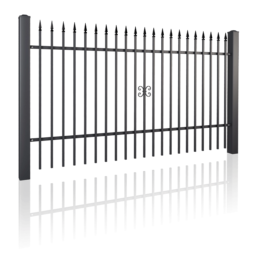 Four fence models in the VARIO collection, made of steel box sections, constitute a universal offer for everyone. The sections are terminated with PVC finial tips in the shape of a pyramid, sphere or cone. The top edge in each model can be straight, concave or convex. The VARIO segments are also available in a skewed version.