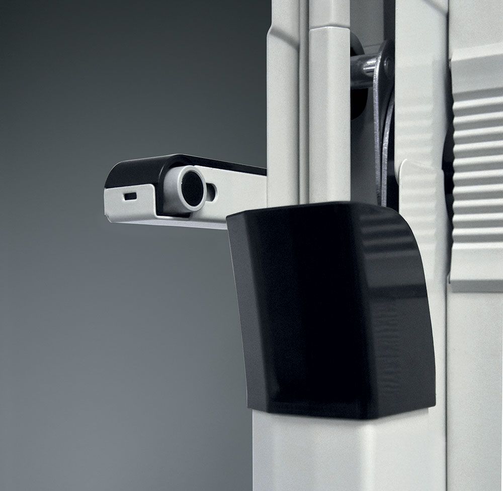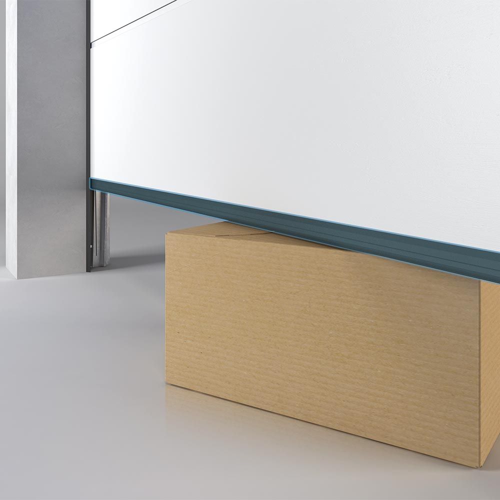 Our drive units feature amperometric obstacle detection, which stops and reverses the door leaf when it encounters an obstacle, protecting the person or object from getting trapped. The drives also cooperate with photocell safety systems that prevent the door from closing when an obstacle appears in its path.
