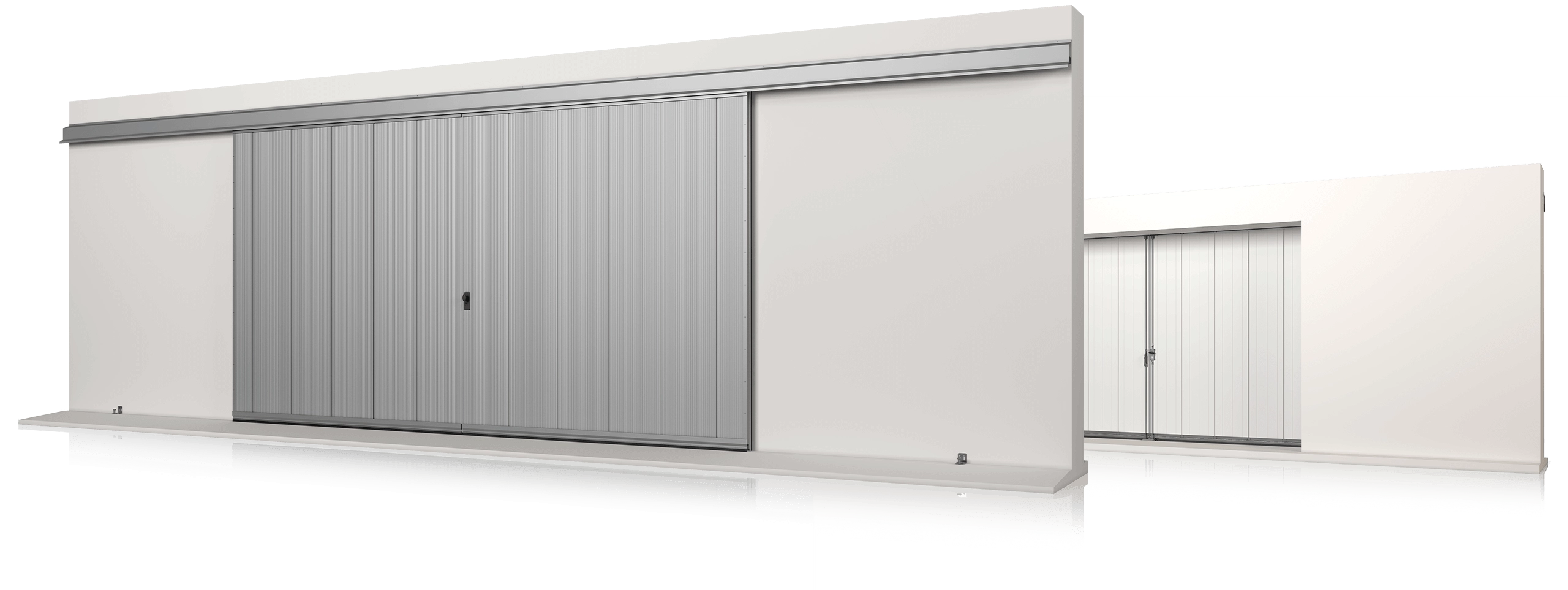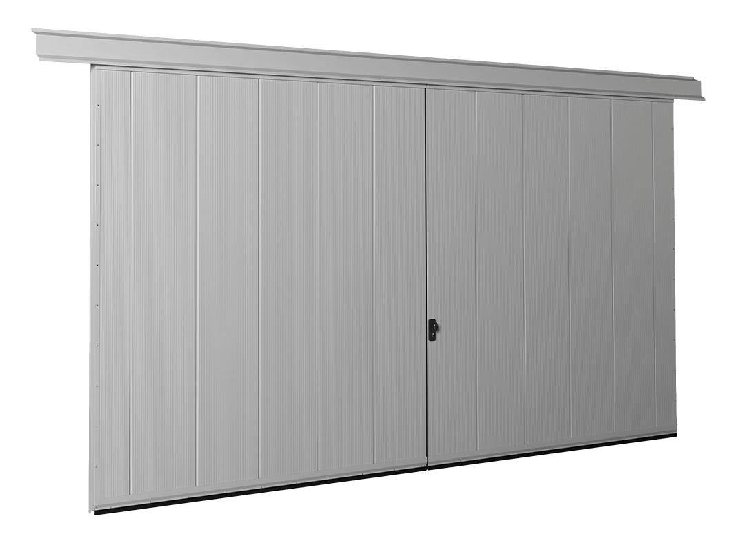 The SlidePro double-leaf overhead sliding door with V ribs or G panels without ribs