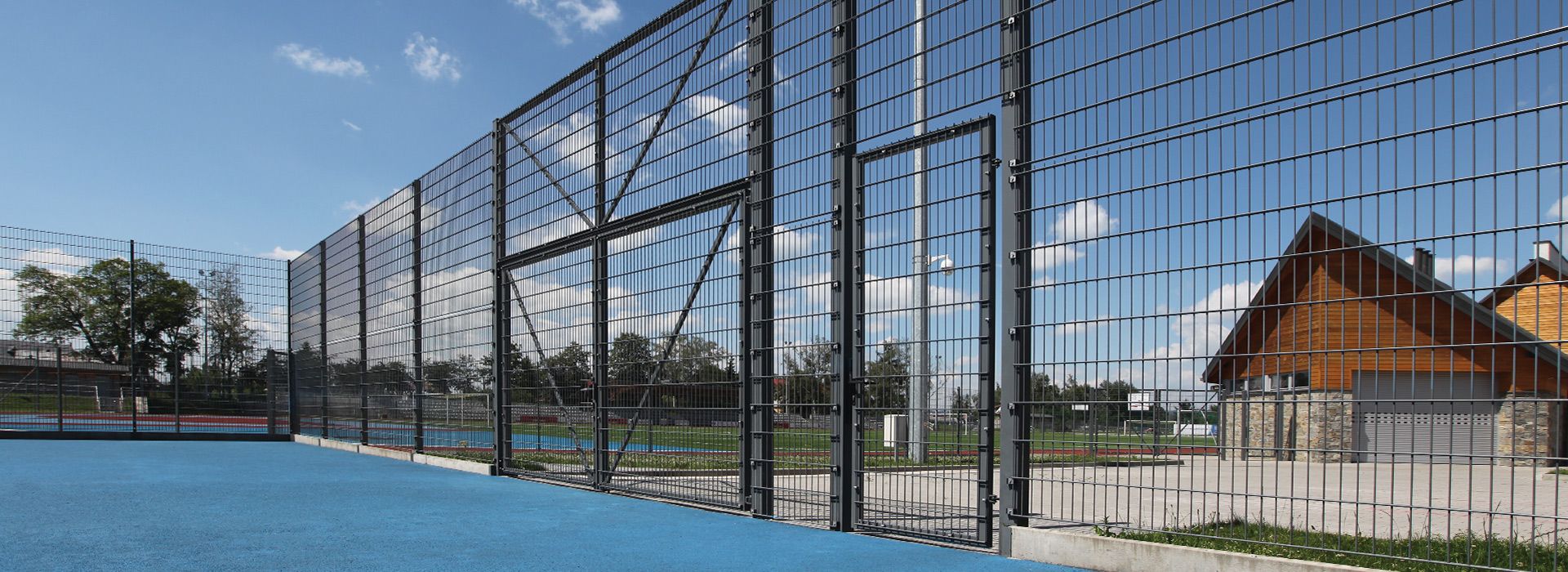 WIŚNIOWSKI sport fences are proven solutions intended for football stadiums, pitches, sports fields, and tennis courts. The sport system includes industrial fence elements such as the VEGA 2D and VEGA B mesh panels, VEGA 2D Super Sport sport panels, sport posts with an increased cross-section and height, posts with ball stop accessories, and access control elements such as single- and double-leaf gates and wickets.
