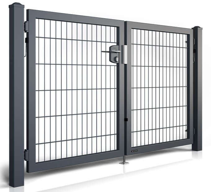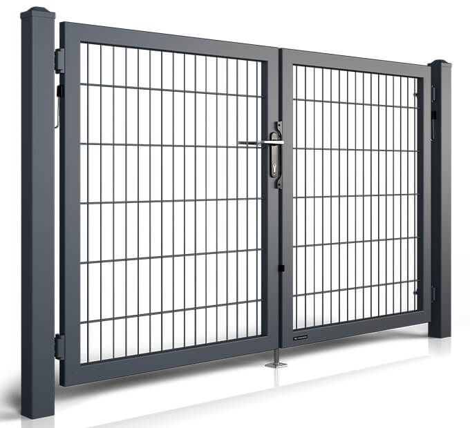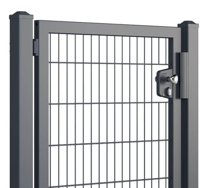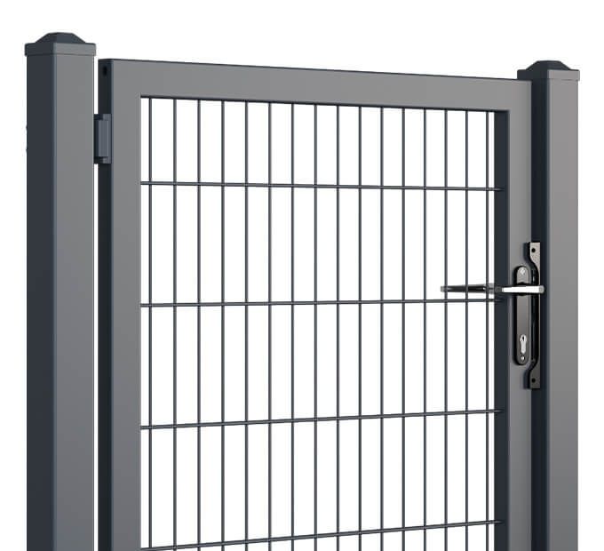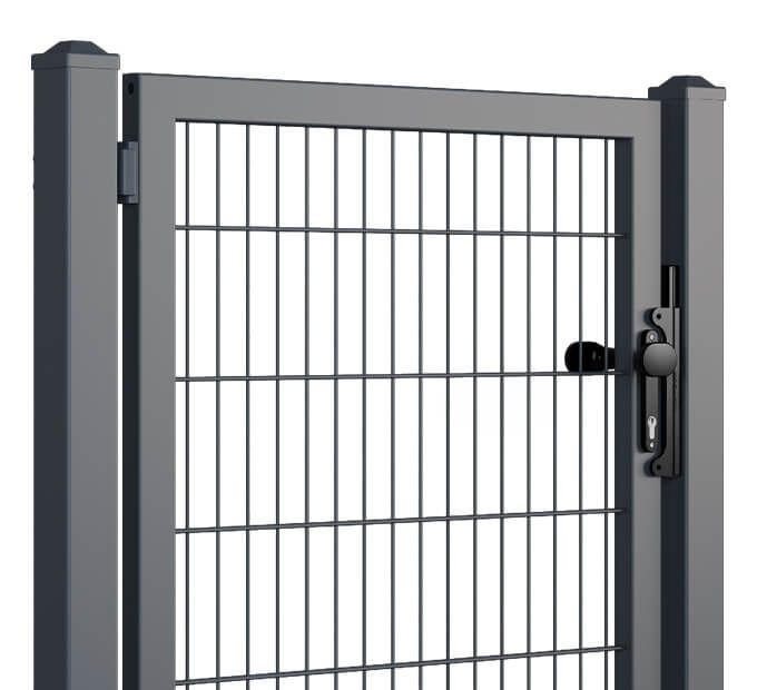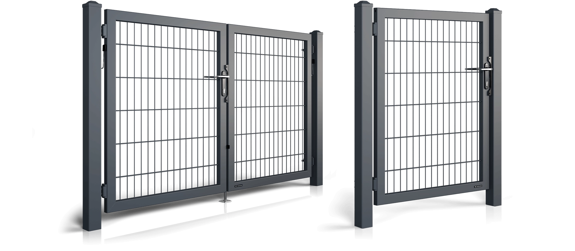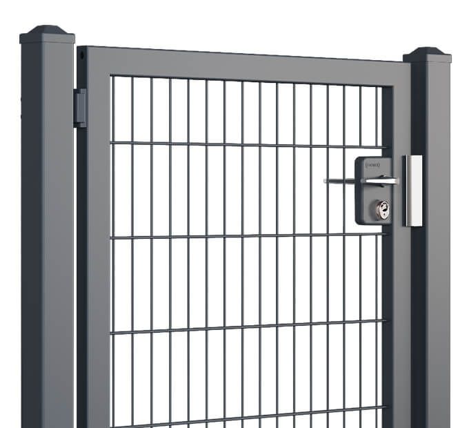 A system solution for home and industry. Allows functional security of properties, loading centres and company premises. The gate or wicket comes with supporting posts and a LOCINOX hinge and lock set, a lock with variable locking direction and hinges with an opening angle of 180 degrees. The gate leaf is filled with VEGA 2D or VEGA 2D Super mesh panel welded to the structure. 10-year anti-corrosion guarantee for gates and wickets protected in the DUPLEX powder coating system.