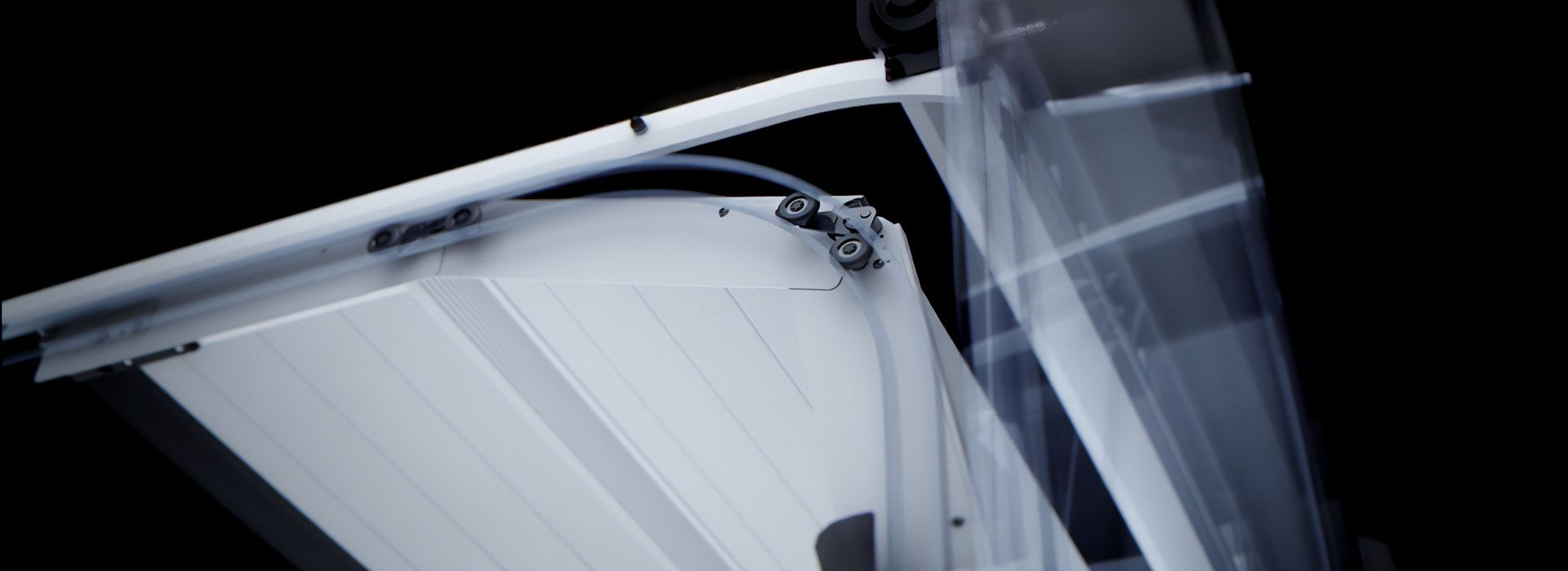 The inner side of the curtain and the track, safety, and suspension systems are powder-coated in the RAL 9002 or RAL 9005 (Black Edition version) colours. This unique feature lets you enjoy modern design and an aesthetic finish also in your garage.
