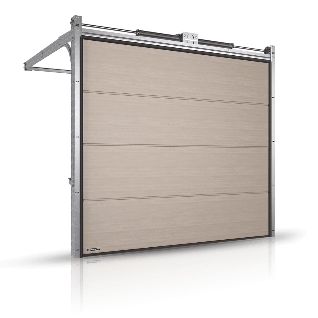 The UniPro sectional garage door stands out thanks to extensive functionality and unique design, which makes it a premium version in the standard class. A broad selection of colours, structures, and rib designs makes it possible to match the garage door to the style of the building. It is perfect for keeping heat inside the garage so that it stays warm.