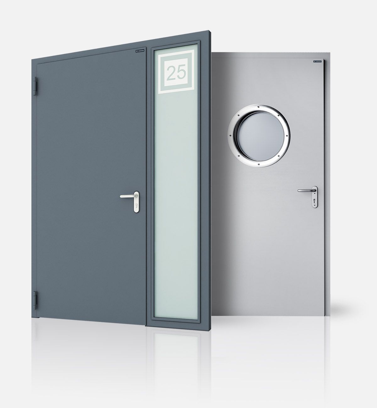 Diverse models and style variants of the technical doors will be a great choice for underground garages and utility rooms, back room entrances, production hall and other manufacturing area entrances, sports and cultural facilities, shopping malls and other public utility buildings. Durable steel solutions ensure safety in all dimensions: burglary protection, long-lasting reliability, and functionality.